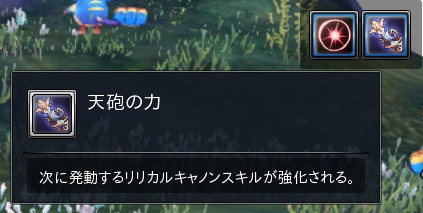 この状態でキャノンスキルを使用すると天砲の力が発動する。