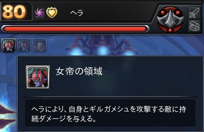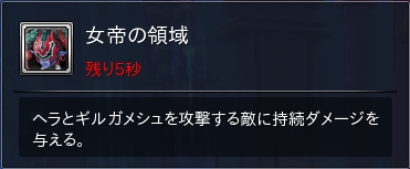 ちなみにヘラのバフ欄は、常に「女帝の領域」が2つ点灯(と点滅)してます。反射のバフが消えているなら効果が途切れるのも納得なのですが、バフは消えずに効果だけ一時的に消失します。心なしかギルガメッシュが居なくなると反射が途切れる時間が長くなるように感じます。