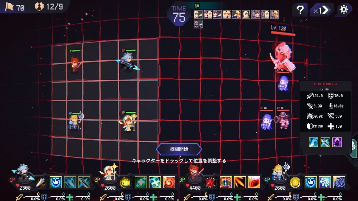 ・PTの4人それぞれが職業に就けるこのゲームですが、2つの職業の組み合わせには必ず「絆」の効果が設定されていて、戦闘開始後にバフがかかります。
